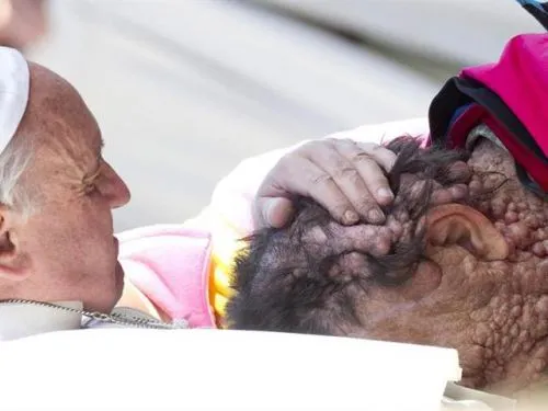 A HAIA, 06 Nov. 13 / 08:07 pm (ACI/EWTN Noticias).- Ao terminar a audiência geral desta quarta-feira na Praça de São Pedro, o Papa Francisco comoveu novamente o mundo ao abraçar efusivamente um homem que padece neurofibromatose, uma enfermidade neuronal que causa tumores na pele e nos ossos, causando fortes dores.