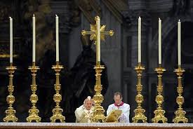 Desde o início do pontificado do papa Bento XVI, um crucifixo foi colocado no centro do altar voltando-se para o local do sacrifício. O papa Francisco tem mantido esta prática.