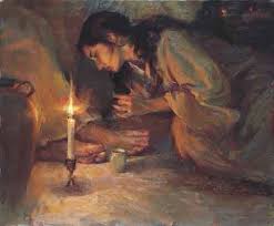 37Certa mulher, conhecida na cidade como pecadora, soube que Jesus estava à mesa, na casa do fariseu. Ela trouxe um frasco de alabastro com perfume, 38e, ficando por detrás, chorava aos pés de Jesus; com as lágrimas começou a banhar-lhe os pés, enxugava-os com os cabelos, cobria-os de beijos e os ungia com o perfume.